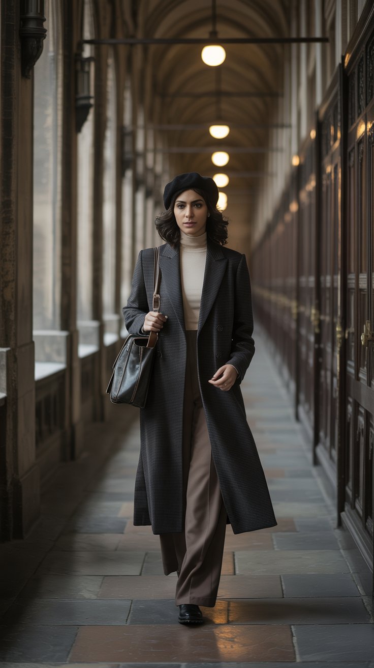 There’s something about a long coat and a beret that makes every step feel purposeful.