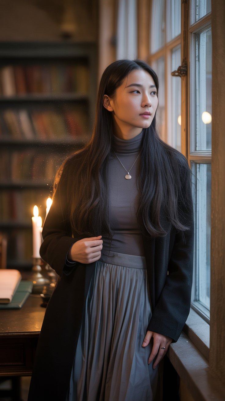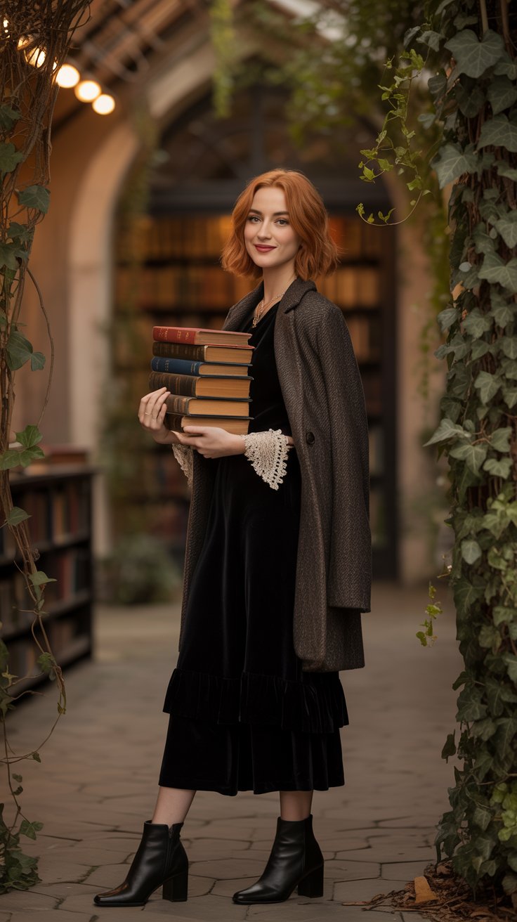 Whether you’re drawn to dark romantic silhouettes, cozy intellectual layers, or ethereal elegance, these outfits invite you to embrace your most enchanting self.