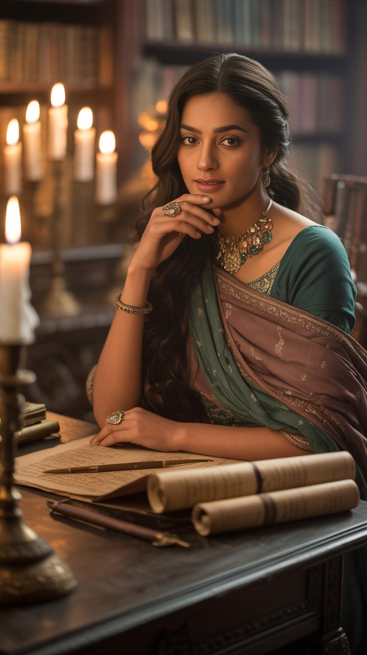 Surrounded by candlelight and books, this outfit feels like confidence wrapped in fabric.